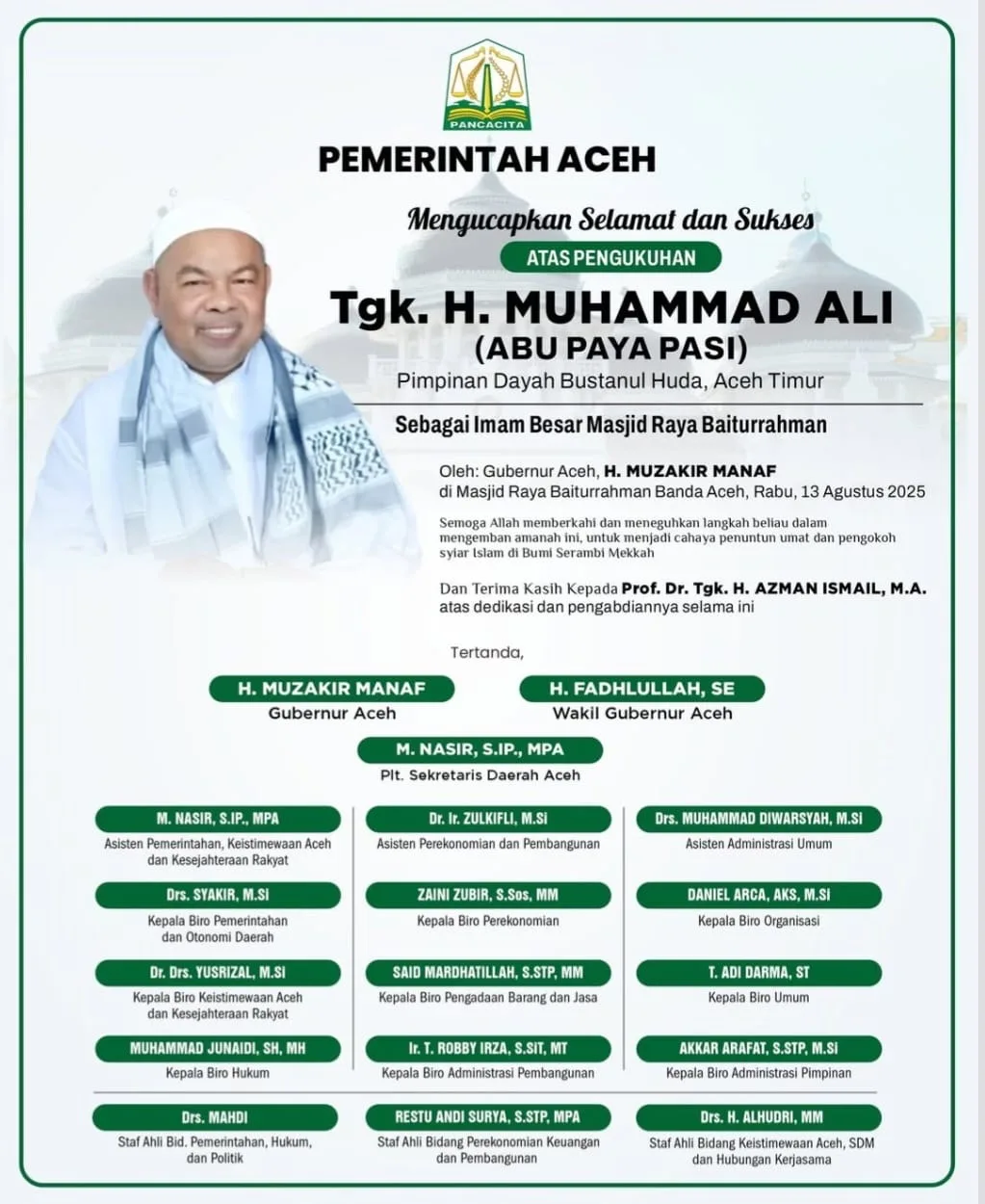 Banda Aceh – Pimpinan Dayah Mudi Mesra Samalanga, Tgk. H. Hasanoel Bashry atau yang akrab disapa Abu Mudi, kembali mengisi pengajian Tastafi di Masjid Raya Baiturrahman Banda Aceh, Jumat malam (10/10/2025).