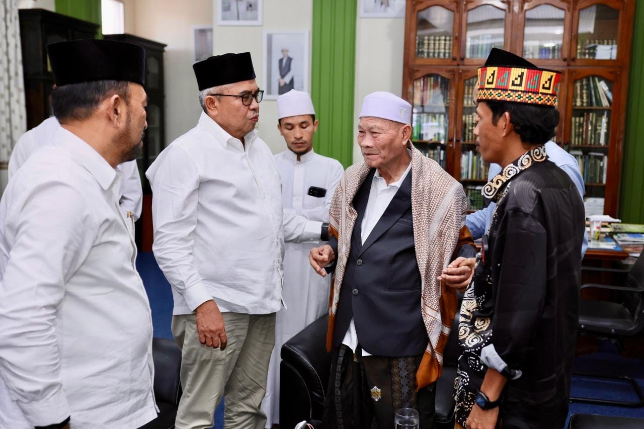 AKTUALNEWS.NET | SAMALANGA – Penjabat Gubernur Aceh Bustami Hamzah, bersilaturrahmi ke kediaman Ulama Karismatik Aceh pengasuh Dayah Ma’hadal Ulum Diniyah Islamiyah Tgk H Hasanoel Bashry, Minggu (18/8/2024).