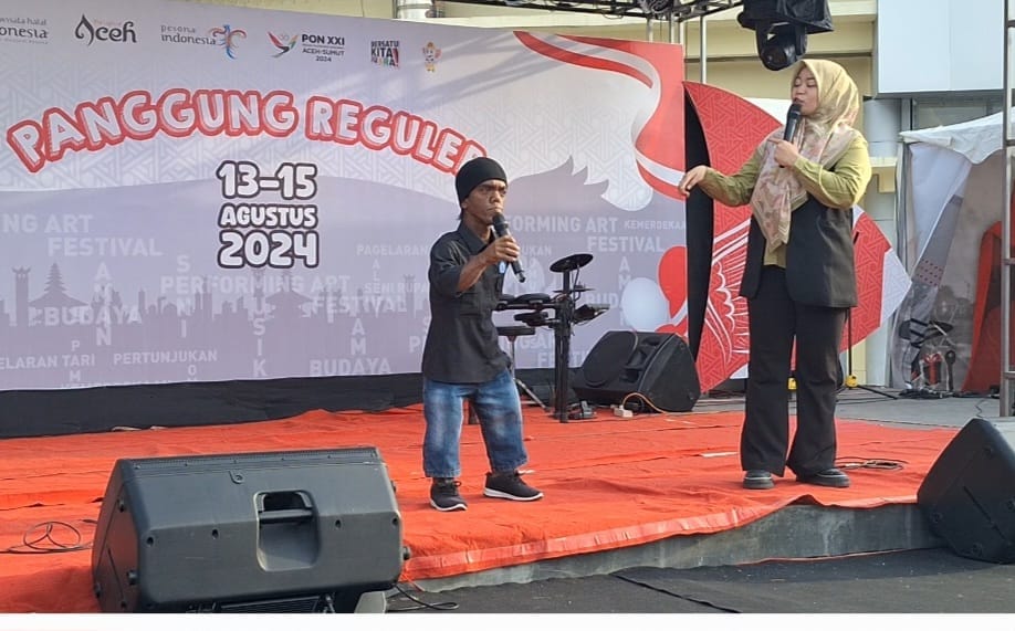 Duet Agam Baba dan Yuli Metuah tak hanya menambah keceriaan, tetapi juga menjadi hiburan di tengah rangkaian acara yang berlangsung di Taman Budaya Aceh.