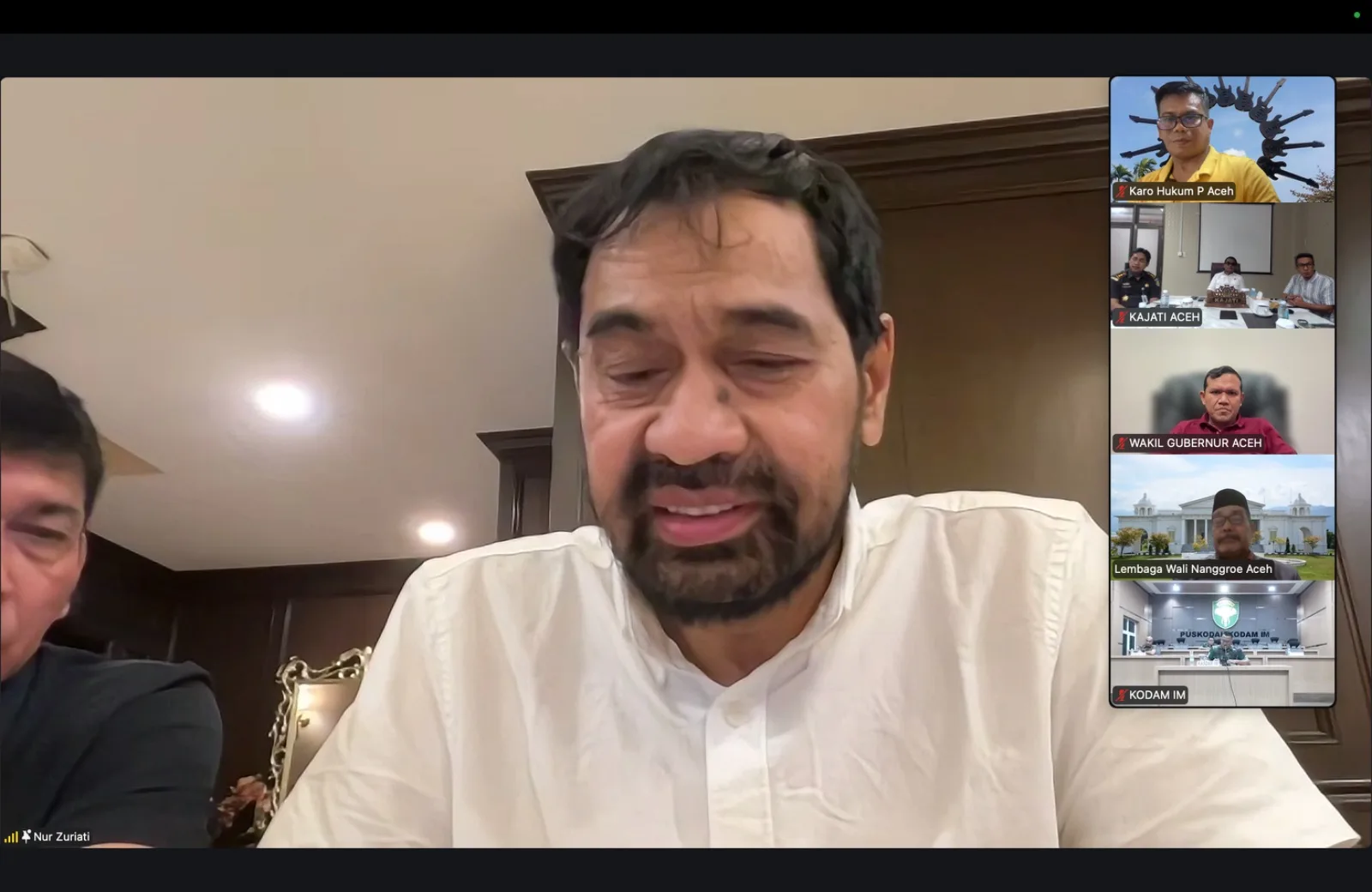 Dalam rapat virtual ini, langsung dipandu oleh Wakil Gubernur Aceh, Fadhlullah (DekFad), serta juga hadir Ketua DPRA, Kapolda Aceh, Kajati Aceh, Kasdam IM serta unsur Forkopimda Aceh Lainnya.