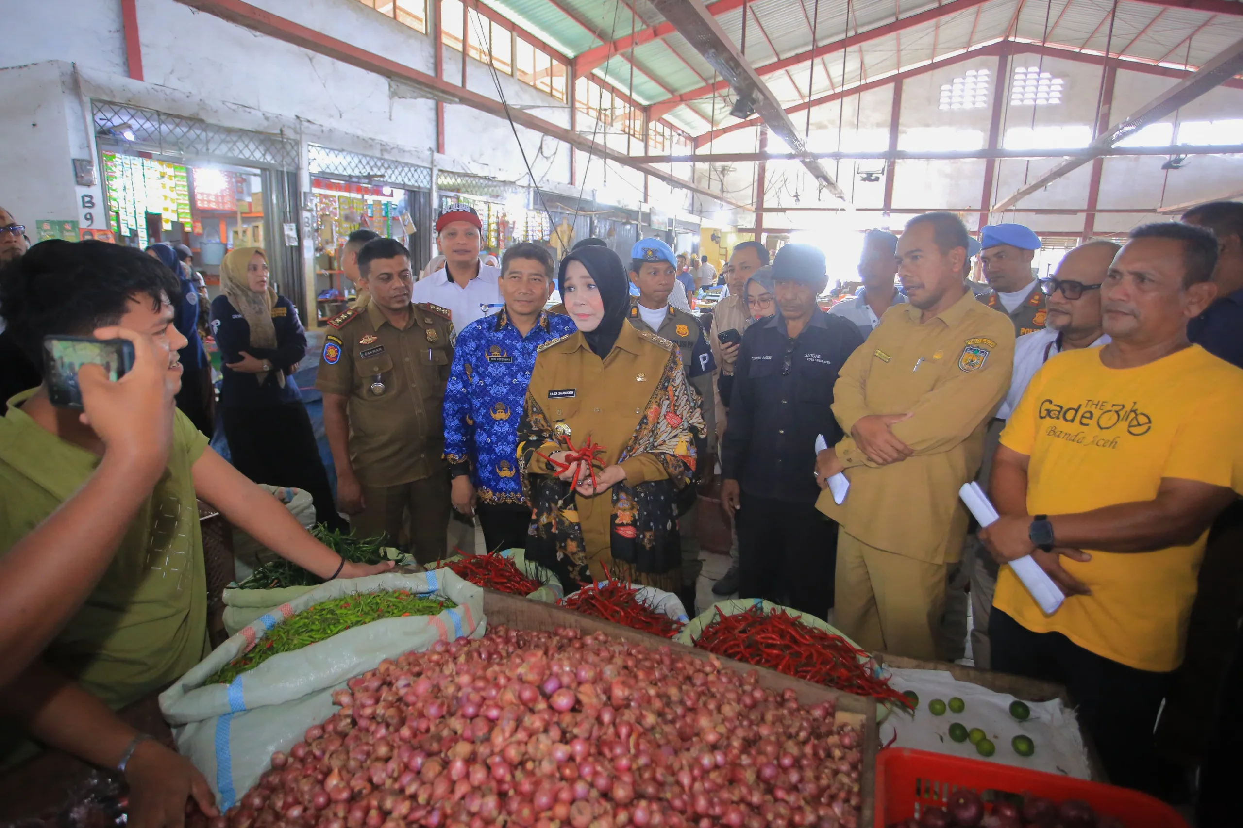 Dalam sidak tersebut, Illiza berinteraksi langsung dengan para pedagang untuk memantau harga sejumlah kebutuhan pokok seperti cabai, bawang, beras, minyak goreng, dan ayam. Hasilnya, ia menemukan bahwa harga sebagian besar komoditas masih relatif stabil.
