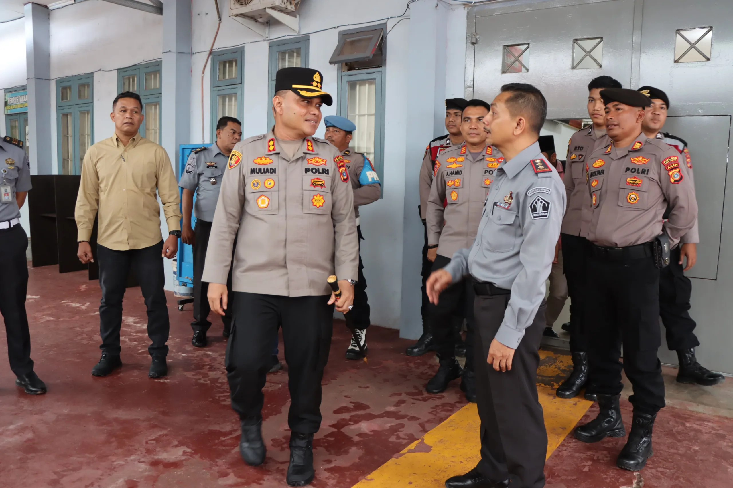 Kualasimpang — Kapolres Aceh Tamiang AKBP Muliadi, melakukan kunjungan ke Lapas Kelas II B Kuala Simpang yang berlokasi di Desa Dalam, Kecamatan Karang Baru, Kabupaten Aceh Tamiang. Kunjungan ini bertujuan untuk memastikan keamanan dan kesiapan pihak lapas dalam mengantisipasi potensi gangguan keamanan.