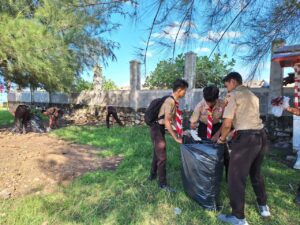 Dalam Aksi Sosial Tersebut Peserta melakukan pembersihan sampah di komplek makam serta menyisir sejumlah titik pantai kawasan itu.