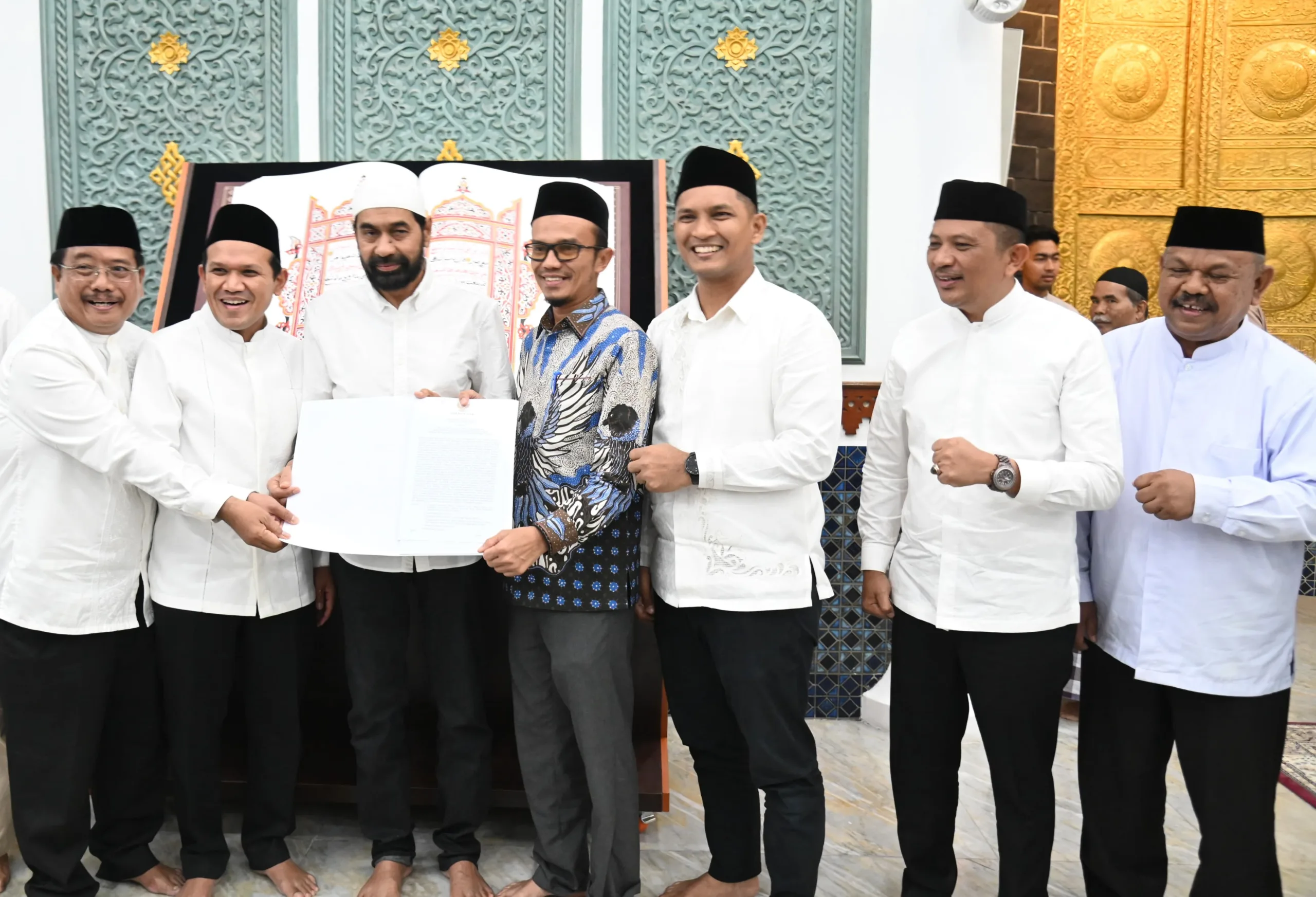BANDA ACEH— Gubernur Aceh, Muzakir Manaf atau akrab disapa Mualem melaunching Instruksi Gubernur Aceh Nomor 1 Tahun 2025 tentang Pelaksanaan Salat Fardhu Berjamaah bagi Aparatur dan Masyarakat serta Mengaji di setiap Satuan Pendidikan di Aceh, pada Minggu, (16/3/2025).