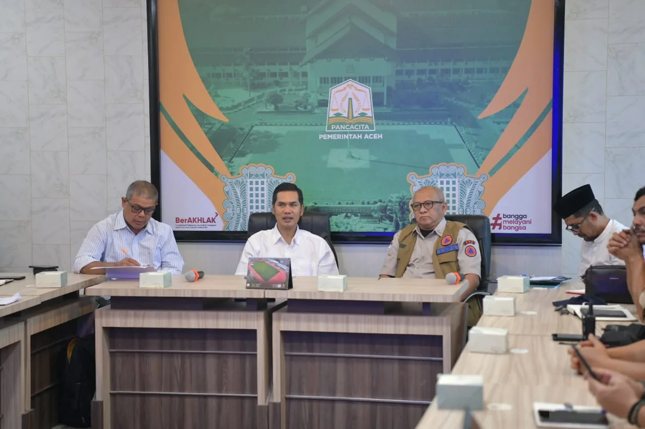 BANDA ACEH – Pemerintah Aceh menggelar rapat darurat penanganan bencana banjir dan longsor yang melanda sejumlah kabupaten/kota di Aceh, di Kantor Gubernur Aceh, Jumat, 28/11/2025. Rapat dipimpin Sekda Aceh, M. Nasir, dan dihadiri unsur TNI, Polri, Basarnas, BNPB, dan BPBA.