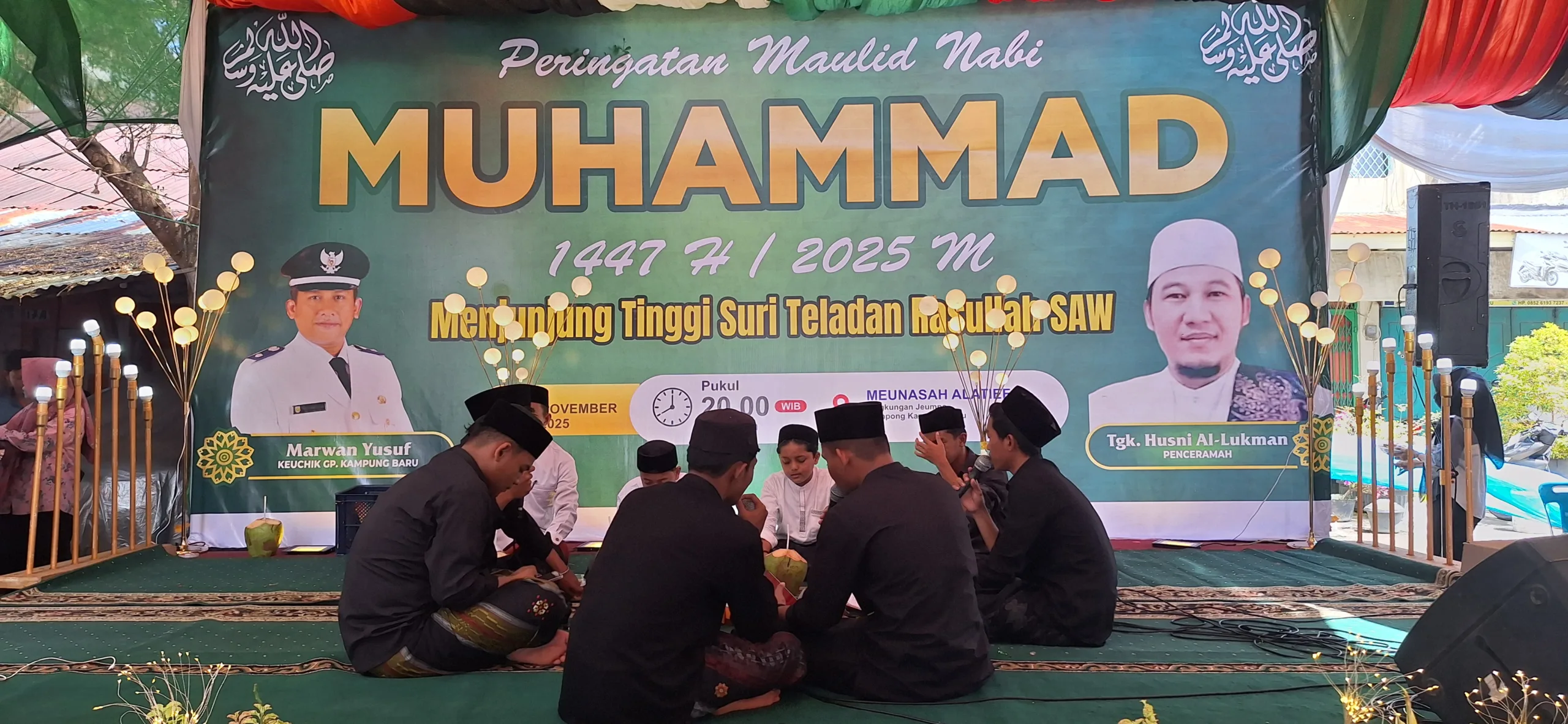 Banda Aceh – Suasana penuh hikmah dan kebersamaan mewarnai peringatan Maulid Nabi Muhammad SAW 1447 Hijriah yang digelar oleh Pemerintah Gampong Kampung Baru, Selasa (4/11/2025), di Meunasah Allatief, Banda Aceh.