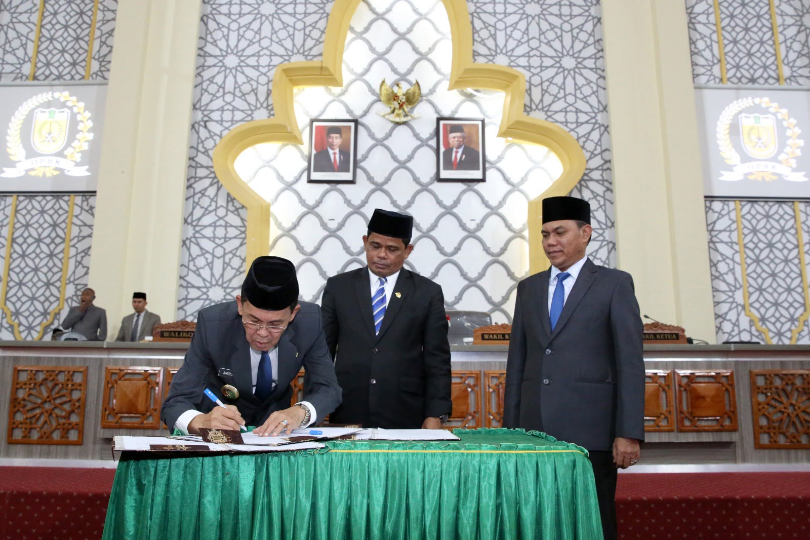 Dokumen dimaksud ditandatangani oleh Pj Wali Kota Banda Aceh Amiruddin bersama pimpinan dewan, yakni Ketua DPRK Banda Aceh Farid Nyak Umar beserta dua wakil ketua Usman dan Isnaini Husda.