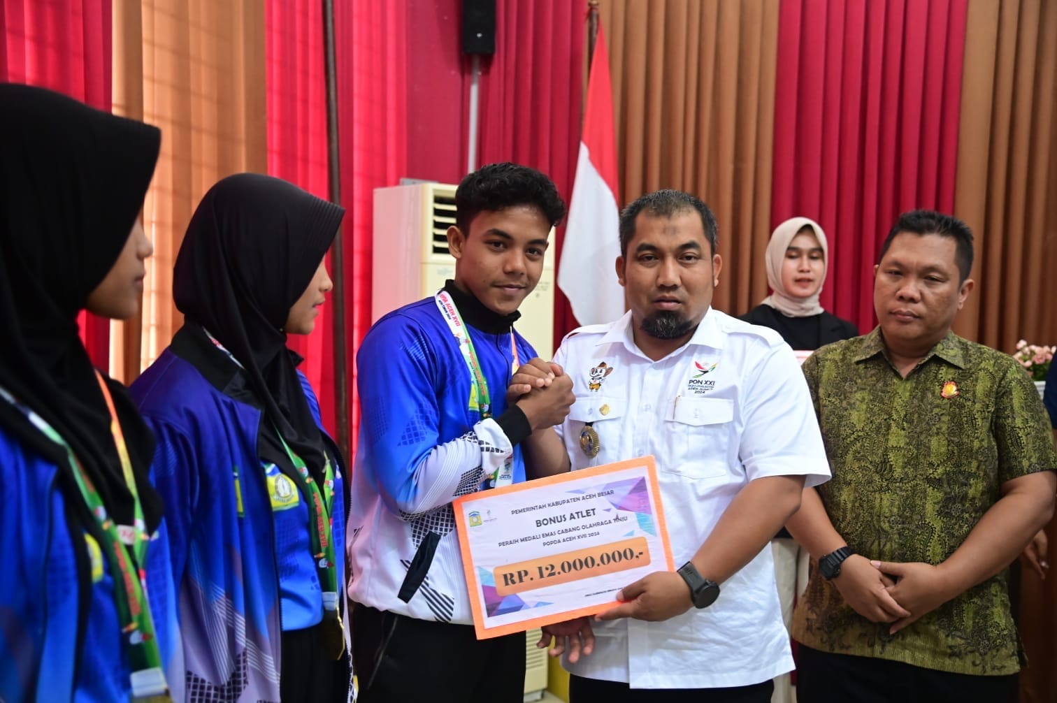 Pj Bupati Aceh Besar Serahkan Bonus untuk Atlet dan Pelatih Popda XVII