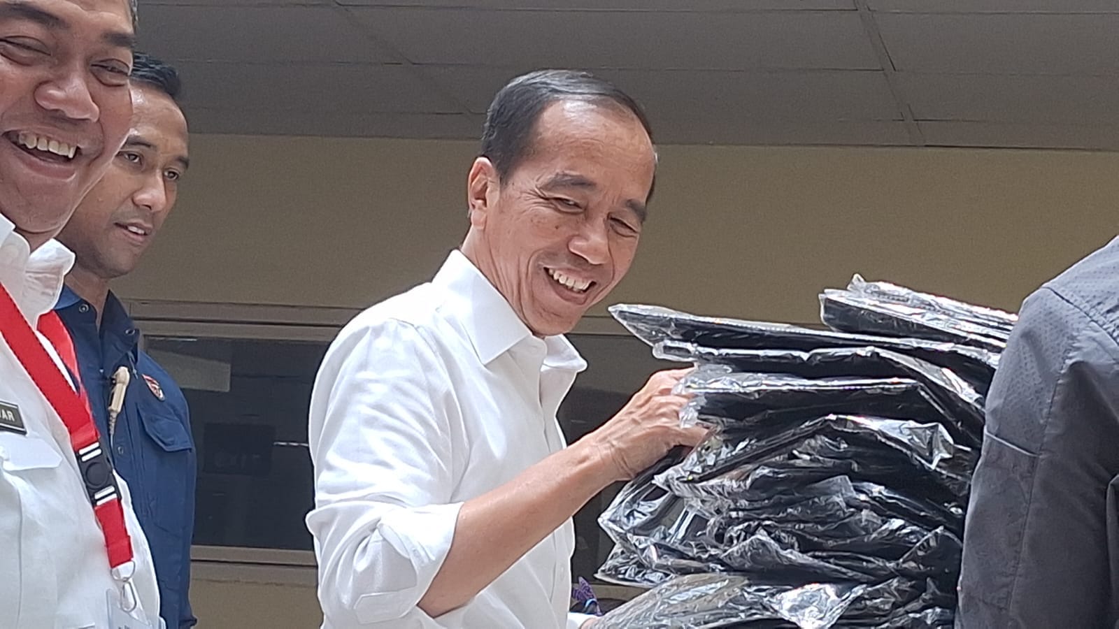 Mengetahui kehadiran orang nomor satu di RI itu, seribuan keluarga pasien yang ada di RSUDZA langsung merangsek mendekati. Senyum khas Presiden Jokowi menyapa ramah. Beberapa yang beruntung, dapat berswafoto ria dengan Presiden. Sedangkan beberapa yang lain terlihat tersenyum puas karena mendapat baju yang diberi Presiden.