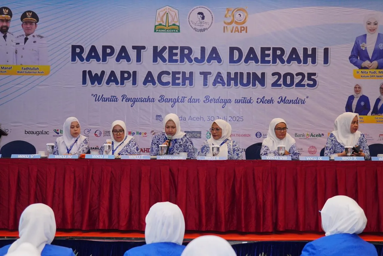 Banda Aceh – Dalam semangat kebangkitan ekonomi dan pemberdayaan perempuan pelaku usaha DPD Ikatan wanita pengusaha Indonesia (IWAPI) Aceh menyelenggarakan rapat kerja daerah pertama yang berlangsung di Hermes Palace Hotel, Rabu, 30 Juli 2025.