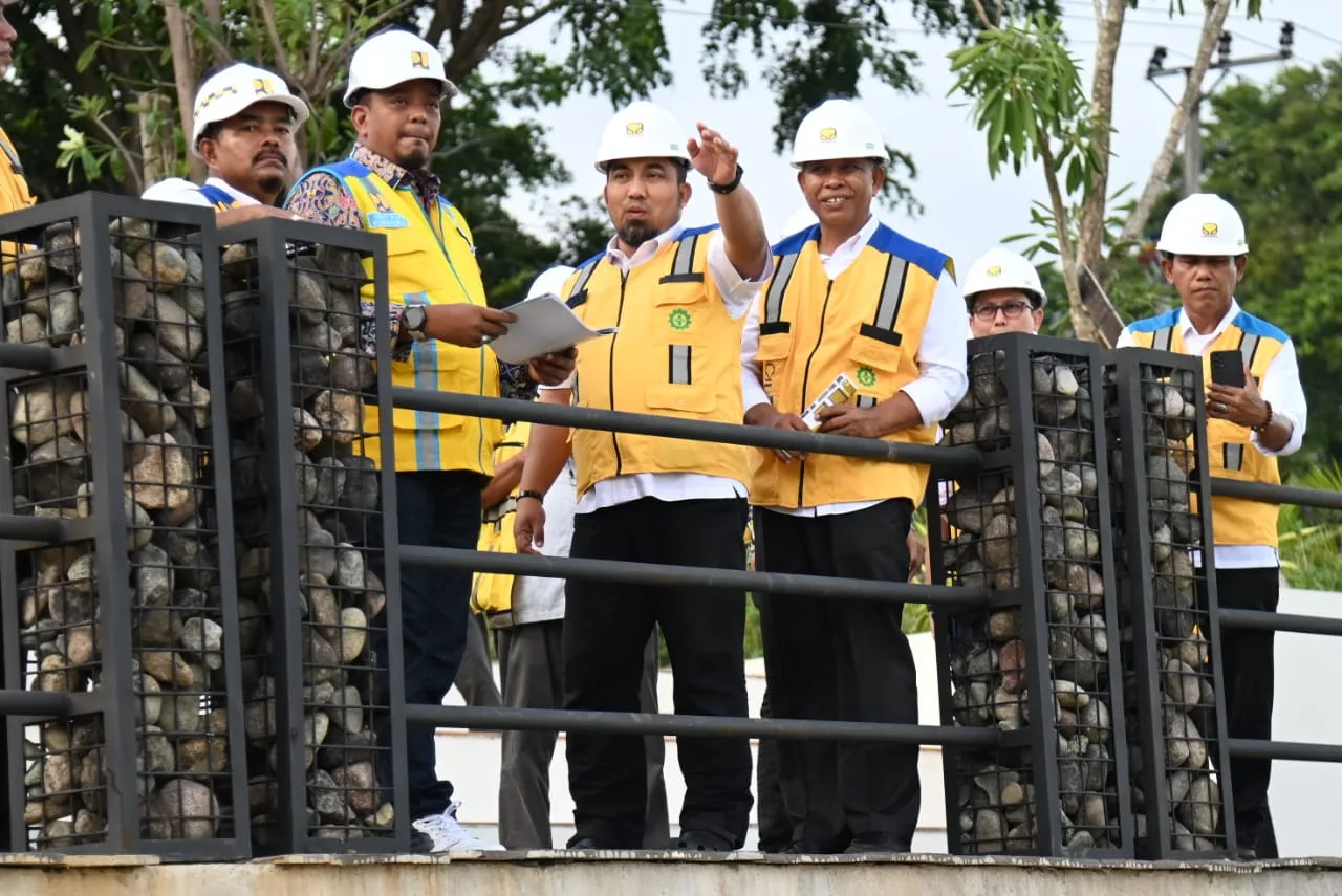 KOTA JANTHO – Penjabat Bupati Muhammad Iswanto SSTP MM bersama OPD terkait, meninjau proyek pengerjaan kembali bendungan karet di Krueng Aceh kawasan Lambaro, Kecamatan Ingin Jaya, Rabu (18/12/2024).