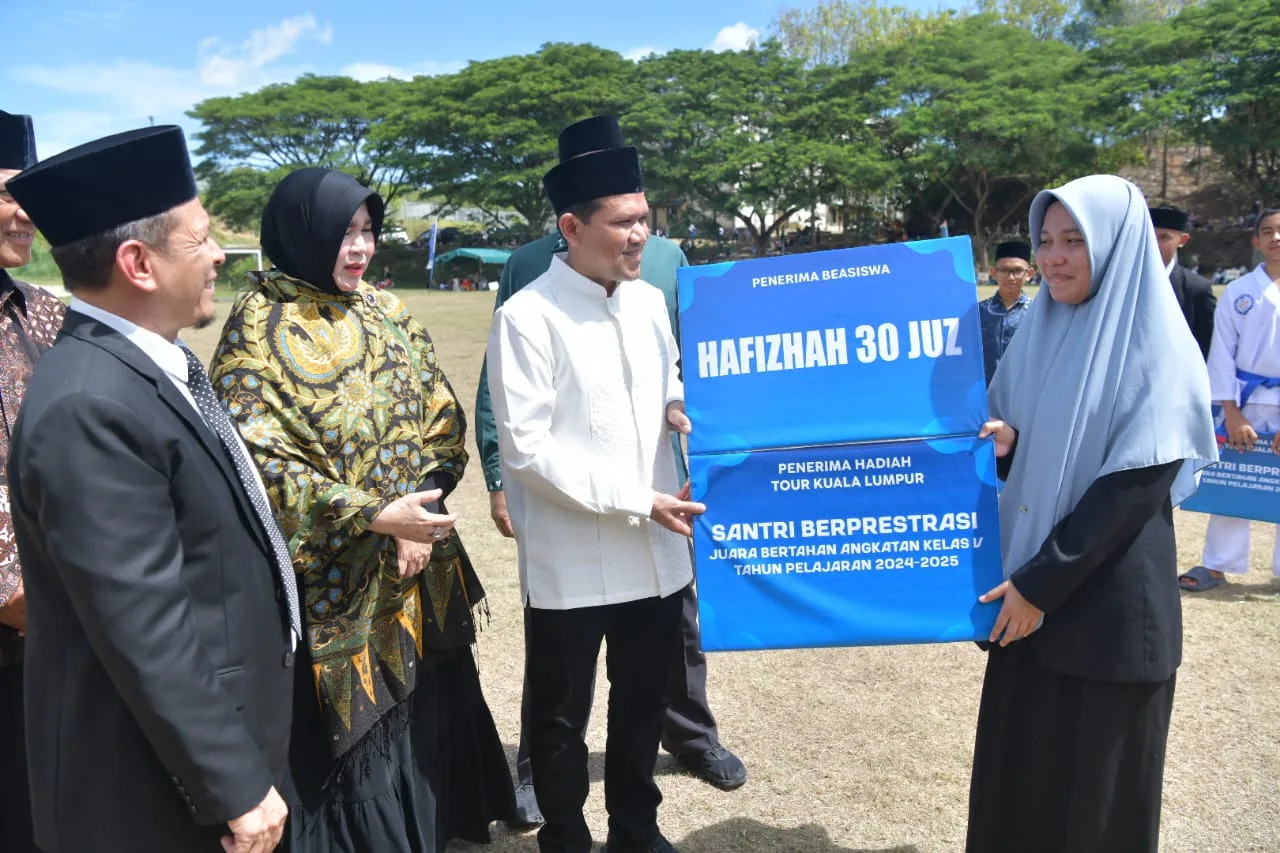ACEH BESAR – Wakil Gubernur Aceh, Fadhlullah, menjadi inspektur apel tahunan Pesantren Modern Teungku Chiek Oemar Diyan dalam rangka pekan perkenalan kepesantrenan, di lapangan pesantren setempat, Minggu, (24/8/2025).