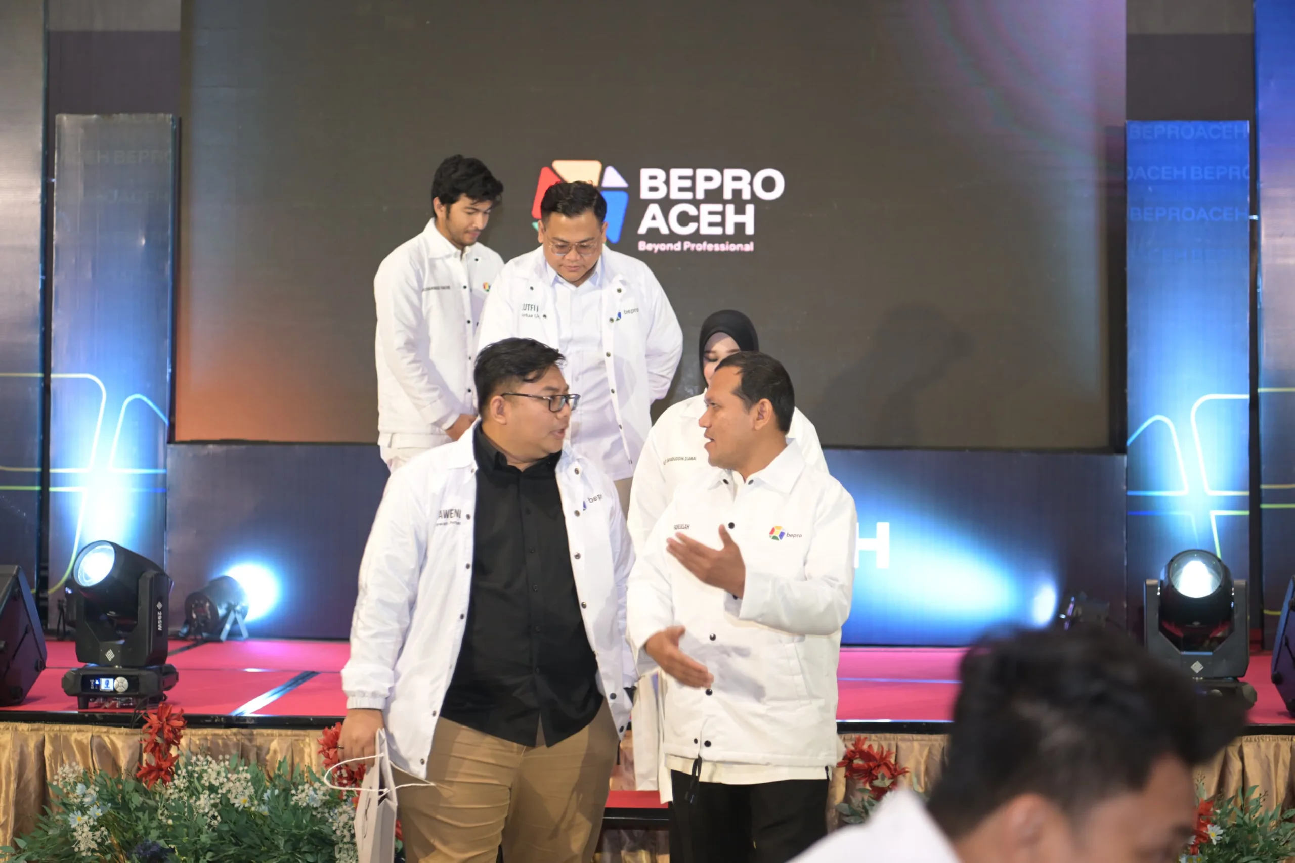 ACEH BESAR— Wakil Gubernur Aceh, Fadhlullah, menghadiri acara pelantikan pengurus Beyond Profesional (Bepro) Aceh, di Ballroom The Pade Hotel, Jumat, (20/6/2025).