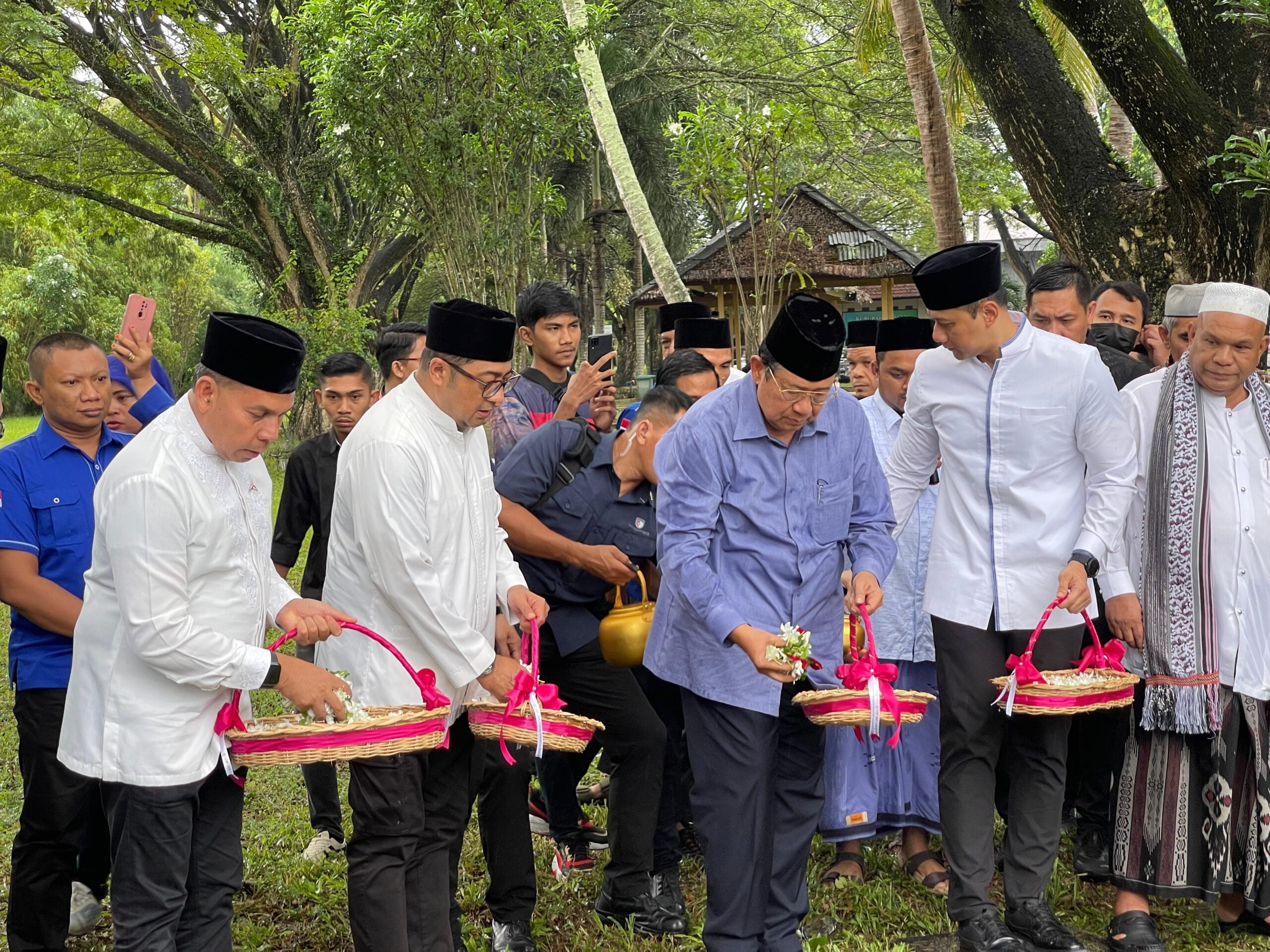 Setelah mendarat di bandara Sultan Iskandar Muda, rombongan Presiden RI Ke-6 tersebut langsung melakukan agenda pertama yaitu berziarah dan menggelar doa bersama di kuburan massal korban Tsunami yang terletak di desa Siron, Aceh Besar.
